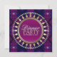Sun Sparkle Dinner Party Invites. Purple pink and indigo blue light energy geometric design pattern with gold sun energy with fully customisable text. Write all your event info on the back ~ where the design is also found in a complimentary layout.