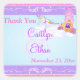 Perfect for the Cinderella love story fit for a King and Queen or Prince and Princess, this romantic 1.5" square shaped pink, purple and sky blue fantasy fairy tale wedding favour thank you sticker has a pink castle floating in the sky on billowy soft white clouds, while an ornate carriage and two white stallion horses wait to whisk the happy couple away. There is a pale pink scrolled flourish on purple border that sits atop a FAUX textured pink background that matches the wedding invitation shown below. It's a perfect way to send out a beautifully coordinated invitation, or you can use it to attach to your wedding favours or candy buffet packaging. If you need any other shapes of sticker, or colour changes, please email niteowlstudio@gmail.com. ***FOR BEST RESULTS, please email me if you want a different size of sticker, or want a different font. The safe margins on the stickers are quite large so if you extend beyond them, your text may get cut off.