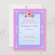 This romantic pink, purple and sky blue fantasy fairytale wedding rsvp card has a pink castle floating in the sky on billowy soft white clouds, while an ornate carriage and two white stallion horses wait to whisk the happy couple away. There is a pale pink scrolled flourish on purple border that sits atop a FAUX textured pink background that matches the wedding invitation shown below. Perfect for the Cinderella love story fit for a King and Queen or Prince and Princess. ***PLEASE NOTE there are no raised elements on this invitation. Everything is printed flat. It is shown here on basic paper, but for an added bit of elegance, I suggest the metallic ice paper if your budget allows, as it has a lovely subtle opalescence to it that really sets the invitation off. I would NOT use any of the coloured papers (champagne, gold, silver, felt, speckled) as they will ALL alter the colours of the design. The silver metallic paper is much darker than what it appears like online. The linen paper will add a texture of thin lines that you may not want, and it is a light weight paper. The basic or recycled papers are a cheaper alternative if you are on a tighter budget. ***PLEASE NOTE that if you change the fonts or size of the fonts, it may alter how your invitation prints. It will print the way you see it on your monitor, so if you have alignment issues, or sizing problems, please contact me for help. I will not see your invitation once you order it, and Zazzle will NOT edit anything (typos, alignment, etc.). If you require assistance or would like any other matching items, please email your request to niteowlstudio@gmail.com.
