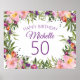Pink Purple Floral Green Leaves 50th Birthday Poster