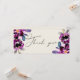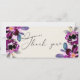 Thank you card in an elegant heart embellished calligraphy font. Enclosed in beautiful watercolor pink and purple flowers.