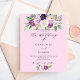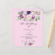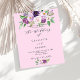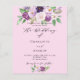 A pink background. Decorated with purple watercolored flowers and greenery. Personalise and add your names and party details.