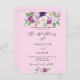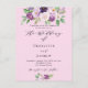 A pink background. Decorated with purple watercolored flowers and greenery. Personalise and add your names and party details.
