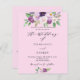A pink background. Decorated with purple watercolored flowers and greenery. Personalise and add your names and party details.