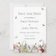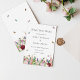 Feminine and classic, this save the date invitation features a lovely garden of watercolor pink and purple flowers including roses, tulips, lavender and eucalyptus greenery with bright coloured butterflies and bumble bees flying around.
