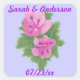 Pretty set of pink and purple geraniums with green leaves, with placeholders for names and wedding date is printed on custom Save the date stickers. Details are easy to customise on the template forms. The background colour of lavender can also be customised. There are matching items in this store. Thank you for shopping at CherylsArt on Zazzle.