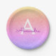 Pink and Purple Pastel Ombre Faux Glitter and Sparkle Elegant Birthday or Bachelorette Party Plates. These Wedding, Bridal Shower or Birthday Party Plates can be customised to include your initial and first name. Please contact the designer for customised matching items.