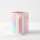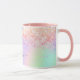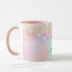 A trendy holographic background with unicorn and rainbow pastel colors in pink, purple, mint green. Decorated with confetti. Personalize and add a name, written with a modern hand lettered style script with swashes. Purple colored letters. To keep the swashes only delete the sample name, leave the spaces or emoji's in front and after the name.
