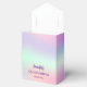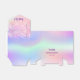 A trendy holographic coloured background in pink, purple and mint green. Personalise and add a name and a date. Purple coloured text.