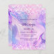 A girly and feminine Sweet 16 invitation. On front: A holographic coloured background in purple, pink. Decorated with blush pink confetti. Personalise and add a name and party details. The name is written with a hand lettered style script, purple coloured letters.