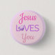 Pink Purple Jesus Loves You Quote Magnet 3 Cm Round Badge