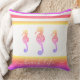 Pink purple ombre 3 seahorses beach life script cushion