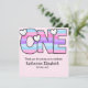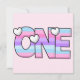 Celebrate a lovely First Birthday with this sweet design! Features a soft pink background and the words 'ONE' in stripes of pink, purple, and blue. This design is easy to match with decorations making for a perfect birthday party celebration!