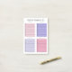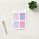 Post-it notepads personalised with your name, for to do lists and daily organising with four categories: asap, soon, later, whenever. Pink and purple, in two different shades.