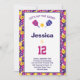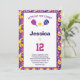 Neon pink, purple, yellow, white Pickleball birthday party invitation. Fully customisable. With RSVP card at the back