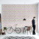 The design features shades of pastel pink, purple, green and red colours in an elegant and fun abstract pattern.