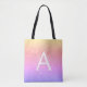 Pastel Gold, Yellow, Orange, Pink and Purple Ombre Faux Sparkle and Glitter Elegant Monogram Book Bag. This Book Bag can be customised to include your initial and first name.