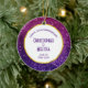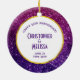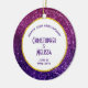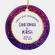 Anniversary ornament with a fancy and elegant design. The background composed of pink and purple sparkling glitter gemstones. Trendy and feminine vibe. A circle with a faux-gold-foil border layered over top with your text inside.