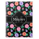 Pink / Purple Watercolor Rose Pattern on Black Notebook