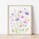 This sweet print set features my hand painted watercolor wildflowers in shades of pink and purples.