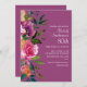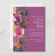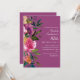 Elegant 80th birthday party invitation for women with colourful pink, purple, and yellow watercolor flowers and foliage on a coordinating purple background. Contact me for assistance with customisation or to request matching or coordinating Zazzle products.