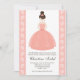 A pretty brunette wears a beautiful pink quince ballgown and matching tiara and tear drop earrings on these cute and formal quinceanera invitations. Click on the following link to see all of our Chrissy H. Illustration and artwork © Chrissy H. Studios, LLC. All rights reserved. Email us at chrissyh@chrissyhstudios.com for any questions about personalising this invitation or customising it further.