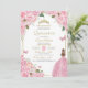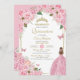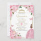 Pink Quinceanera Floral Rose Quince Gown Butterfly Invitation