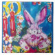 PINK RABBIT,CHRISTMAS CANDLES AND HOLLYBERRIES CERAMIC TILE