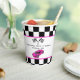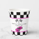 These paper cups feature a black and white chequered flag and pink race car theme. Font styles, colours and more can easily be changed by clicking "edit design" or "customise further". There are also matching party invitations, address labels and more here in my store on Zazzle. Please stop in and take a look around. Be sure to follow me for new product updates! Thank you for your interest in SapphireDesigns!