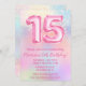 Pink Rainbow 15th Birthday Invitation Girly Pink Glitter birthday party invitation for a 15 year old girl with modern script writing and fun foil balloons.