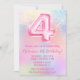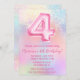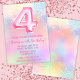 Pink Rainbow 4th Birthday Invitation Girly Pink Glitter birthday party invitation for a 4 year old girl with modern script writing and fun foil balloons.