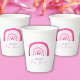 Modern pink rainbow baby shower paper cups and matching party range. Matching items available. Original art from artists own illustrations. Please use the message me button below for help with further customisation and special requests. © Zoe Chapman Design