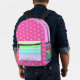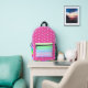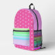 Pink rainbow colour creative design backpack. Pink rainbow multicolored artsy stylish backpack. Artistic stripes and dots pattern. Polka dot and striped unique design for girls. Pink rainbow colourful back to school girl backpack. Cute dotted and striped kids backpack, bright pink rainbow bright vibrant colour tones kid backpack. Lausn design
