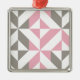 Pink Raspberry and Silver Geometric ZigZag Metal Ornament