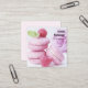 Business cards with a delicious photograph featuring a tower of pink macarons with raspberries placed around. Delightfully divine.