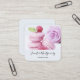 Business cards with a delicious photograph featuring a tower of pink macarons with raspberries placed around. Delightfully divine.