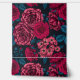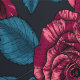 Pink, red and bi-colour roses with blue leaves on wallpaper