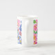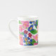 Pink, Red and Blue Primroses Floral Pattern, White Bone China Mug