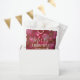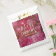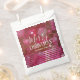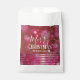 This festive favour bag features a vibrant blend of cranberry red and soft pink, layered with delicate snowflakes and glowing bokeh lights that evoke the magic of a snowy Christmas evening. The front design is elegantly framed with your custom message—like “Merry Christmas" and your family name—printed in crisp white, standing out like fresh snow on a holiday card. It's a warm, personal touch wrapped in winter sparkle.