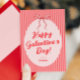 Pink Red Galentine's Greeting Card with a hand drawn bow and trendy stripes.