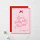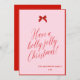 Pink Red Bow Simple Typography Holiday Card with the phrase "Have a holly jolly Christmas"