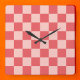 Pink Red Chequered Gingham Pattern Square Wall Clock
