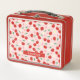 Introducing an adorable lunch box that truly stands out, adorned with a delightful cherry and daisy print in cheerful shades of pink, red, and white. This eye-catching design not only adds a pop of colour to your day but also offers the special chance for personalisation. You can beautifully customise it by adding your name, making this charming lunch box a unique expression of your own style. Perfect for brightening up lunchtime!