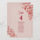 Guide your guests effortlessly with this elegant pink and red floral wedding seating chart table card, designed with delicate botanical line art, soft blush tones, and classic red typography. This refined layout clearly displays the table number and guest names, making it perfect for receptions, formal dinners, and modern romantic celebrations.