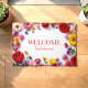 Pink Red Flowers Colourful Welcome Door Mat, Use personalise this template to change text