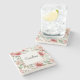 The coasters are gorgeous, a quality feel and heavy weight. They look like a precious archeological find. A rustic stone juxtaposed with a modern floral black and white print. I like the way the print goes slightly imperfect on the cut stone edges giving them a kind-of natural beauty.