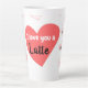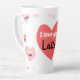 Pink, Red and White I love you a Latte Valentine's latte mug, with beautiful romantic hearts and customisable text.