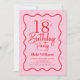 Pink Red Retro 18th Birthday Wavy Border Invitation