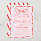 Pink & Red Retro Bow French Christmas Dinner Invitation