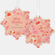 A cute retro-style Christmas-themed pattern featuring Christmas stockings, Santa hats, baubles, and holly in blush pink and red. This snowflake ornament card can be used as a gift tag for your Christmas presents. Personalise it with your name(s) and add it to your gifts.